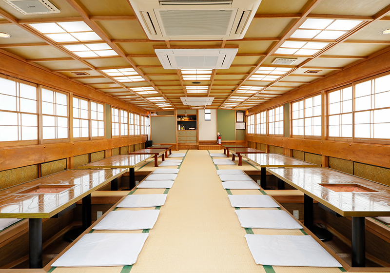 屋形船の仕様には、お座敷、堀ごたつ、イスとテーブル等がございます。お客様の状況に合わせて船をお選び頂けます。