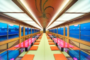 ゆったりとした船上空間で、お料理とともに特別な宴のひとときをお楽しみください。