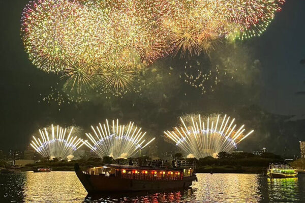 夜空に広がる花火を、屋形船からゆったりと楽しみませんか。