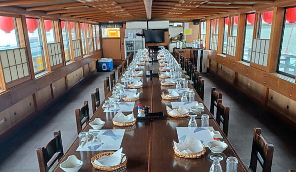 大山丸 |蒲田|冷暖房|スカイデッキ|カラオケ|水洗トイレ| Aコース13,000円プラン(飲み放題) 乗船時間:2時間30分 お通し / おつまみ / 焼き海老 / 特上お刺身船盛り / 天ぷら11種 / おにぎり / おしんこ / 味噌汁 / デザート *税込料金 Cコース13,200円プラン(飲み放題) 乗船時間:2時間30分 お通し / おつまみ / 焼き海老 / DXオードブル / 特上お刺身船盛り / 天ぷら7種 / 寿司 / おしんこ / 味噌汁 / デザート *税込料金 お台場の大山丸 新たに椅子席の座敷になりました